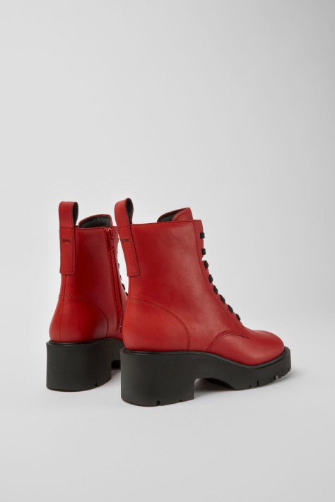 Czerwone, Skórzane, Sznurowane Buty Damskie Z Podeszwą Zewnętrzną Z Pianki EVA. Milah To Masywne Zimowe Buty O Charakterystycznym Miejskim Wygladzie.