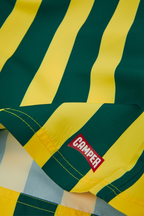 Uniseksowe Szorty Kąpielowe Z PET Z Recyklingu W Zielono-żółte Paski